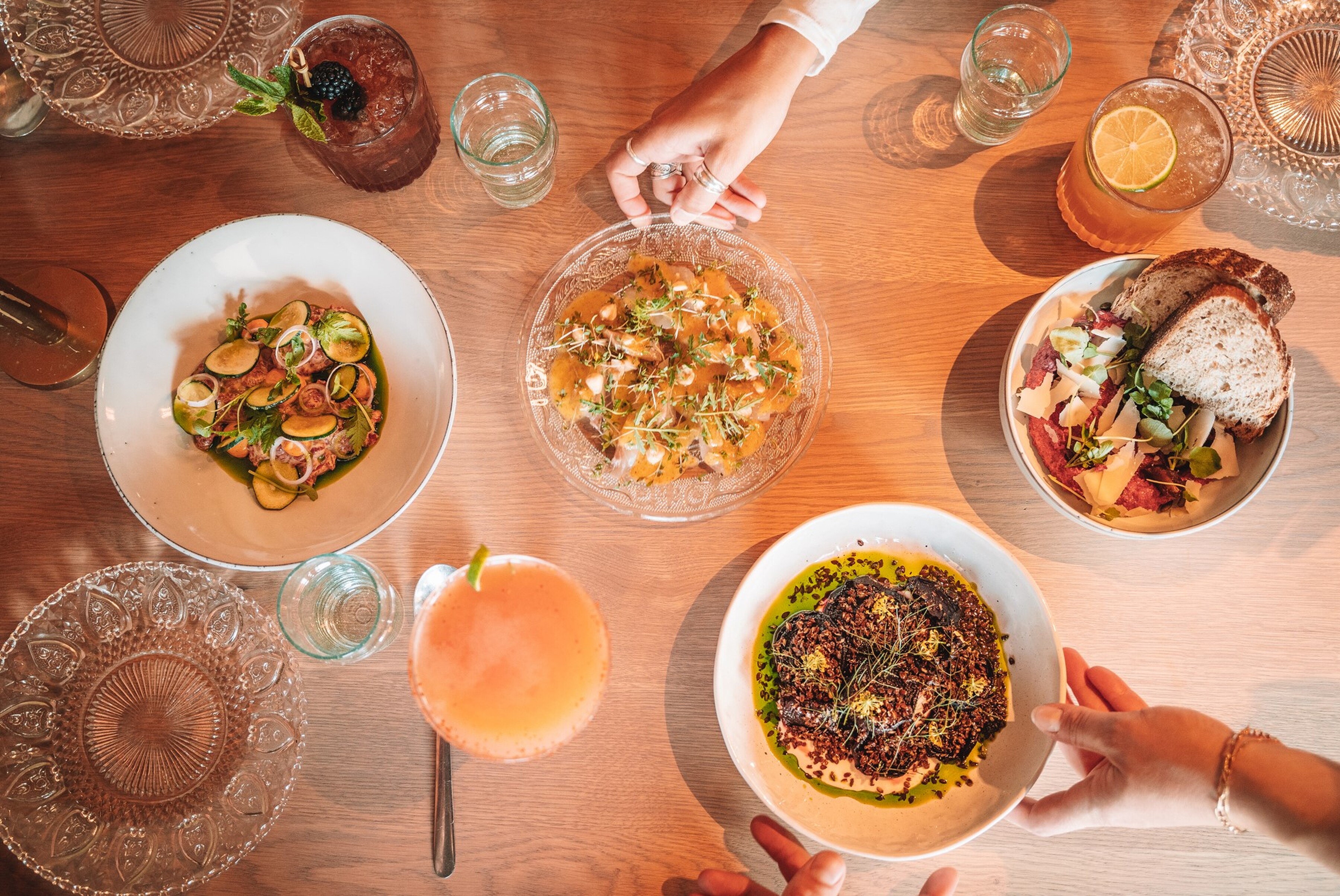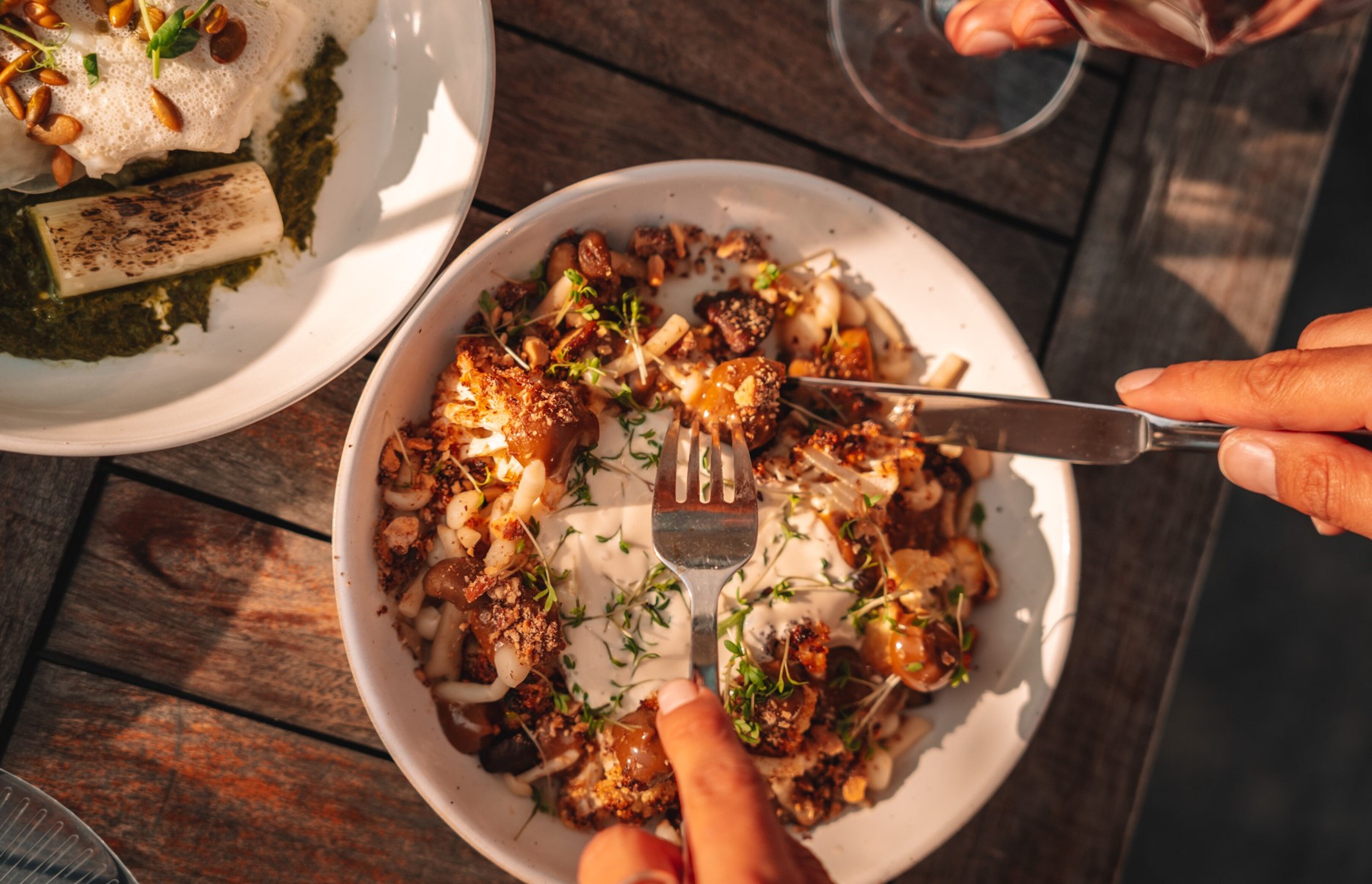 Rick beschrijft het concept als speels en geïnspireerd op de Middellandse Zee. “Denk aan Spanje, Midden- Oosten en een vleugje Italiaans.” Chefkok Jody van den Berg werkte eerder in een luxe fine dining-restaurant en kookt vooral vers en ambachtelijk. Alles wat mogelijk is, maken ze zelf. Zo roken ze de pastrami in eigen keuken en draaien ze hun eigen ijs. “Voor de producten die we zelf niet maken zoeken we partijen die kwaliteit leveren en het liefst uit de buurt.” Brood komt van de Knollentuin, vlees van boerderij De Lindenhof en wijnen van wijnhandel Arends. Het shared dining-concept versterkt de beleving. Je proeft samen van verschillende gerechten. “Met groepen boven de acht hoef je alleen maar na te denken of je een drie- of viergangen diner wil. En met het shared dining concept proef je van alle verschillende gerechten en ontdek je steeds nieuwe smaken.”Reserveer nu een plek in een bruisende omgeving